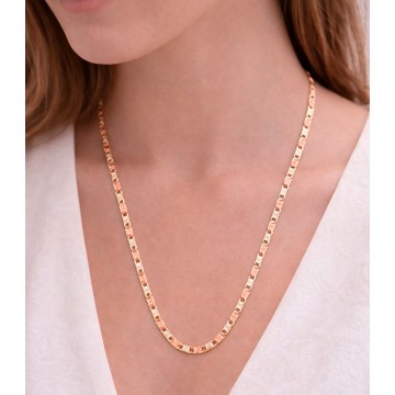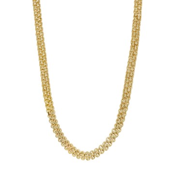 Realza tu estilo con nuestra cadena en tejido bismark, elaborada en fino oro laminado para un acabado brillante y resistente. Su diseño clásico y versátil es ideal para usar sola o con tu dije favorito, convirtiéndose en un accesorio imprescindible que nunca pasa de moda.