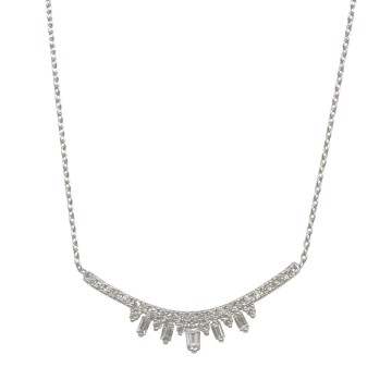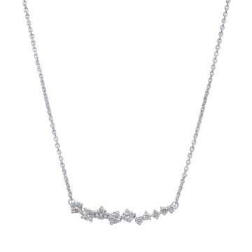Esta gargantilla, elaborada en oro blanco de 18K y acompañada de diamantes, refleja la pureza y el brillo de la sofisticación femenina. Su diseño delicado y resplandeciente la convierte en el accesorio perfecto para ocasiones especiales o para elevar cualquier look con distinción.