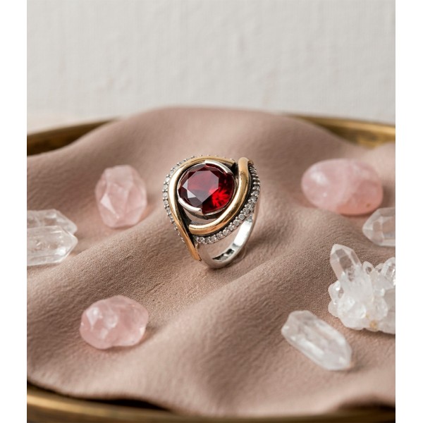 Hermoso anillo en plata 925. Es un diseño elegante y sofisticado, adornado con piedra, circones y lamina dorada.