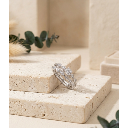 Anillo en oro blanco de 18K con una elegante perla central, realzada por el brillo de delicados diamantes. Una joya única que transmite distinción y feminidad, ideal para realzar tus momentos más especiales con un toque atemporal