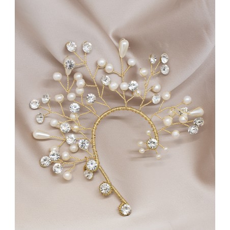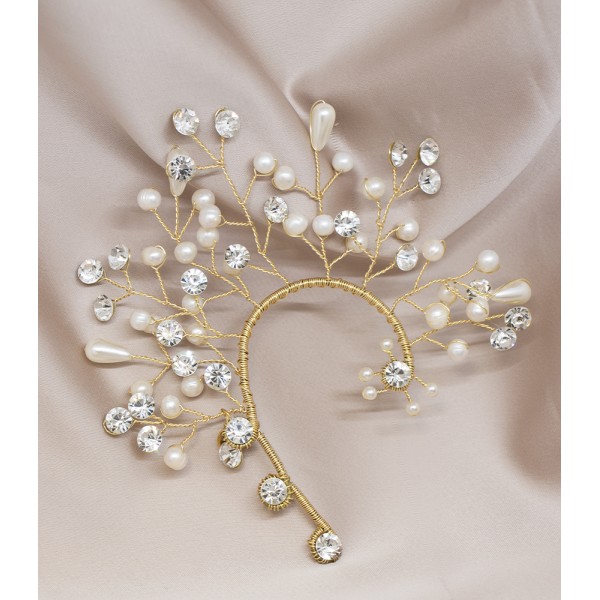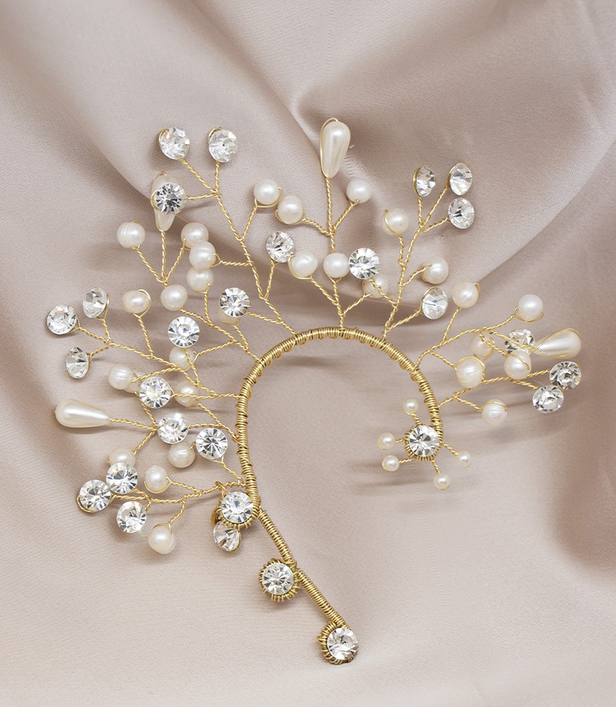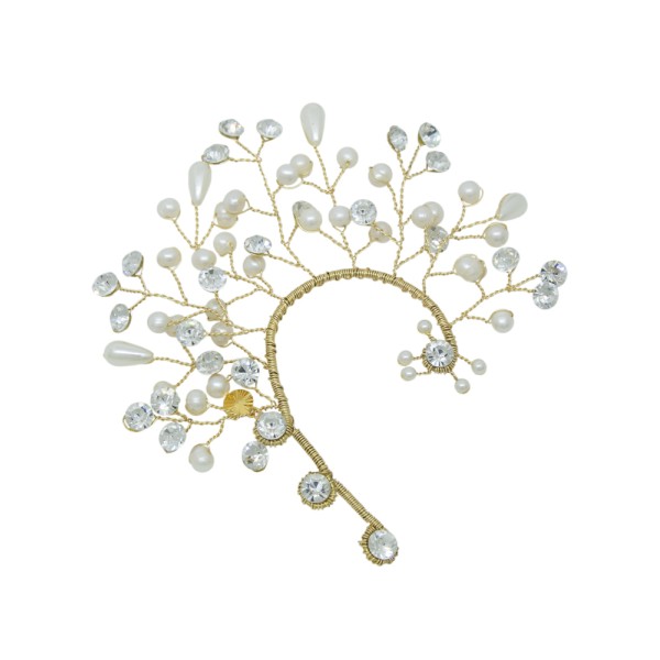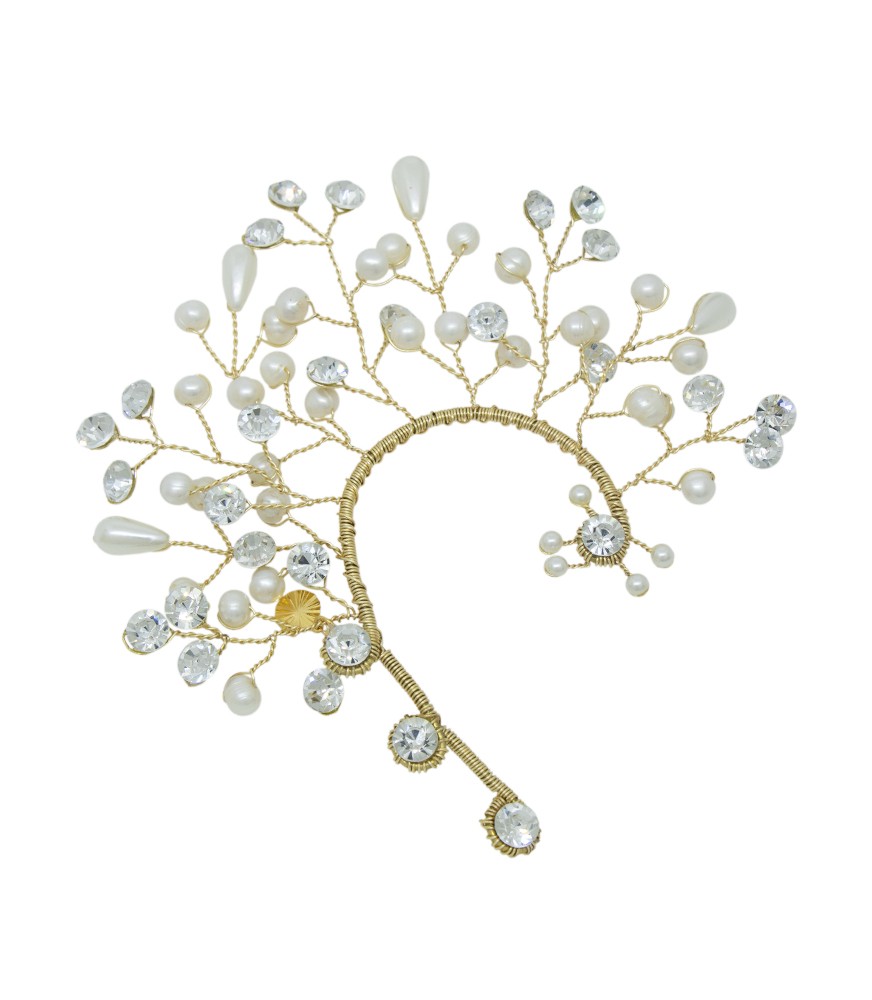 Ilumina tu gran día con esta orejera para novia, elaborada en fino bronce y adornada con cristales brillantes y delicadas perlas. Un diseño elegante y romántico que aporta un toque de sofisticación y distinción a tu look nupcial. Ideal para novias que desean destacar con un accesorio lleno de encanto.