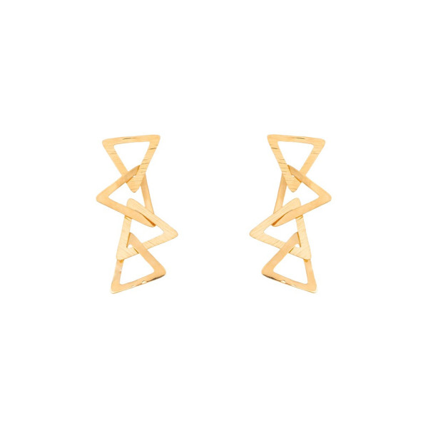 1Lindos aretes en bronce, con baño en oro de 24 kilates. Diseño moderno en estilo largo. Miden 7 cms de largo.
