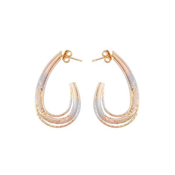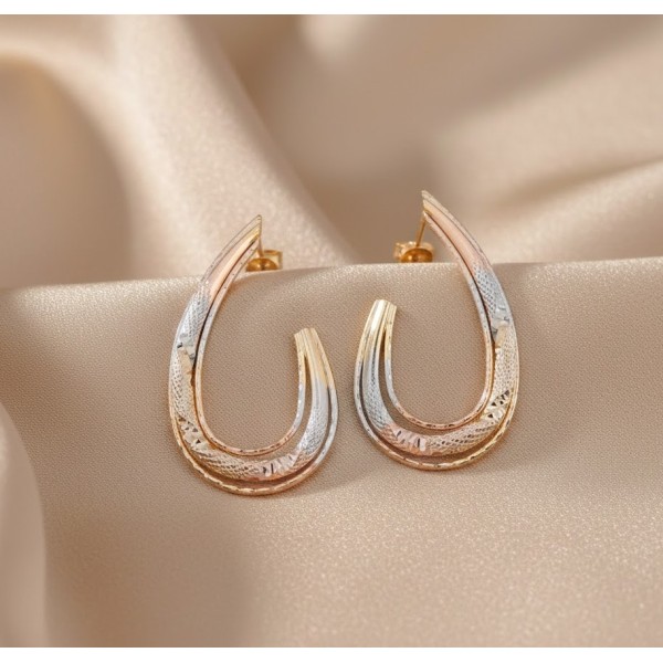 Candongas en diseño moderno semi U tricolor. Medida: 38 mm de largo y 23 mm de ancho.
