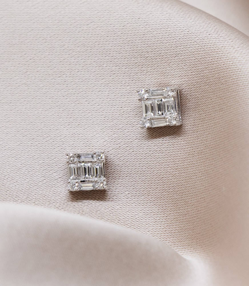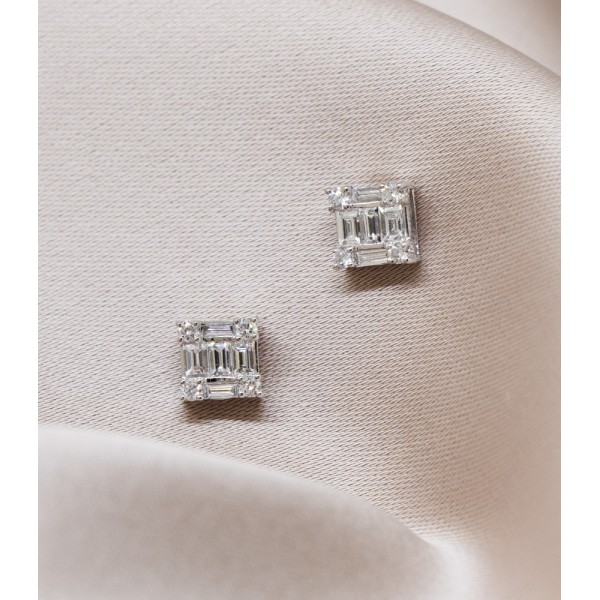 Estos topos elaborados en oro blanco de 18K y realzados con diamantes irradian elegancia y distinción. Su diseño clásico y sofisticado los convierte en el complemento ideal para quienes buscan resaltar su estilo con un toque de brillo atemporal.  Una joya que trasciende modas y refleja pura exclusividad.