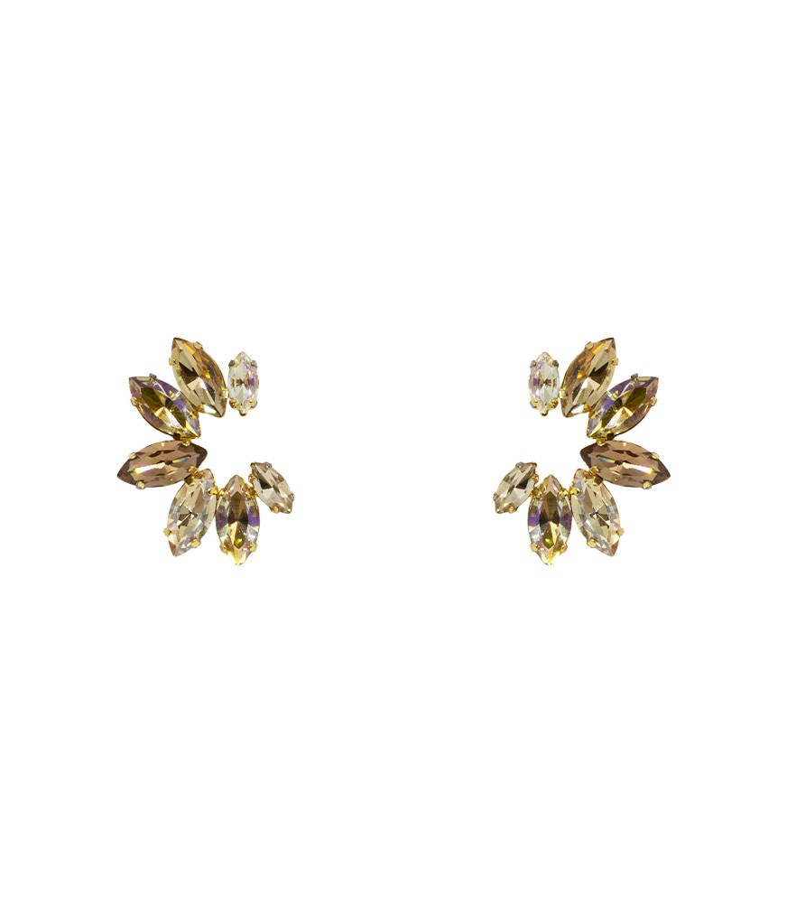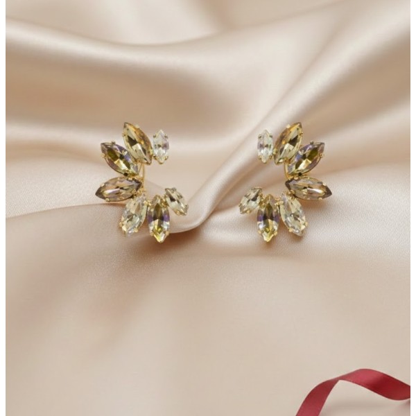 Deslumbra con el encanto celestial de estos aretes en forma de media luna. Elaborados en plata ley 925 y adornados con cristales brillantes, combinan elegancia y sofisticación en una joya que refleja luz y estilo en cada movimiento. Perfectos para elevar tus looks con un toque moderno y femenino.