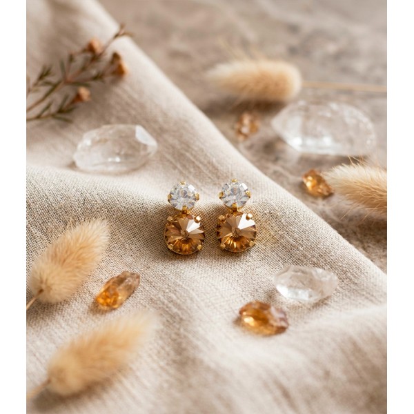 Nuestros topos estilo chatón con cristales en corte rivoli, elaborados en plata ley 925, capturan la luz con cada movimiento, reflejando elegancia y distinción. Un diseño atemporal que combina la sutileza de la plata con el resplandor del cristal, perfecto para elevar cualquier look.