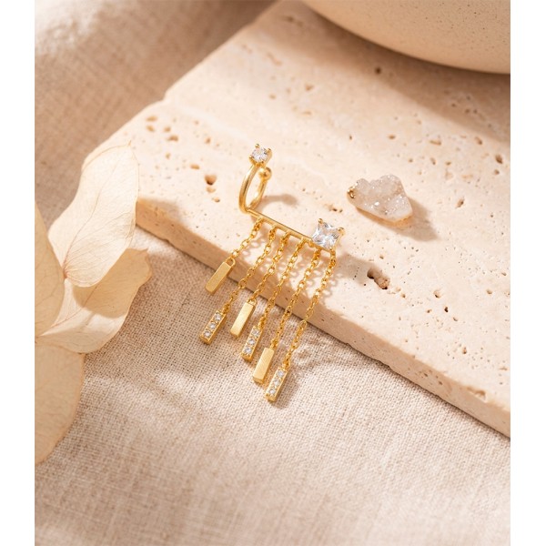 EARCUFF DORADO DISEÑO MODERNO EN PLATA- 559467