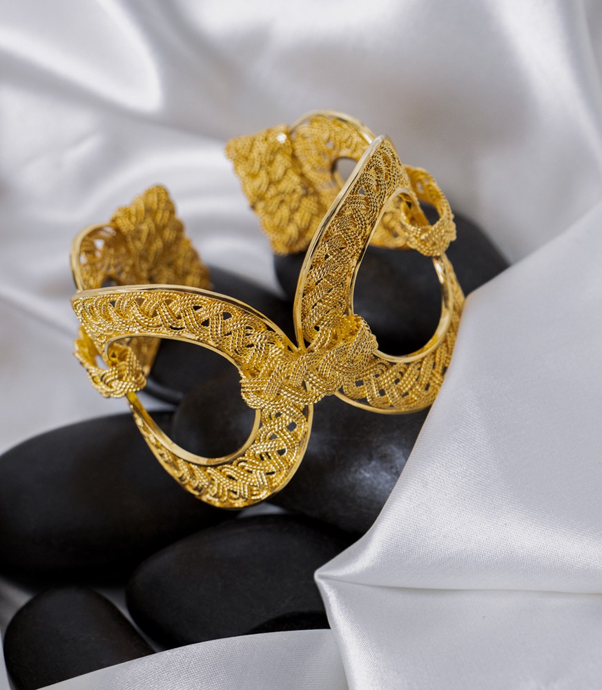 Cada pieza creada por Sonia es una obra de arte, confeccionada a mano con hebras de oro y plata de ley .990, bordadas con cristales certificados. Su compromiso con la creación de joyas en Colombia y su colaboración estrecha con artesanos locales aseguran que cada pieza no solo sea un lujo, sino también un testimonio de la rica tradición artesanal de la región.