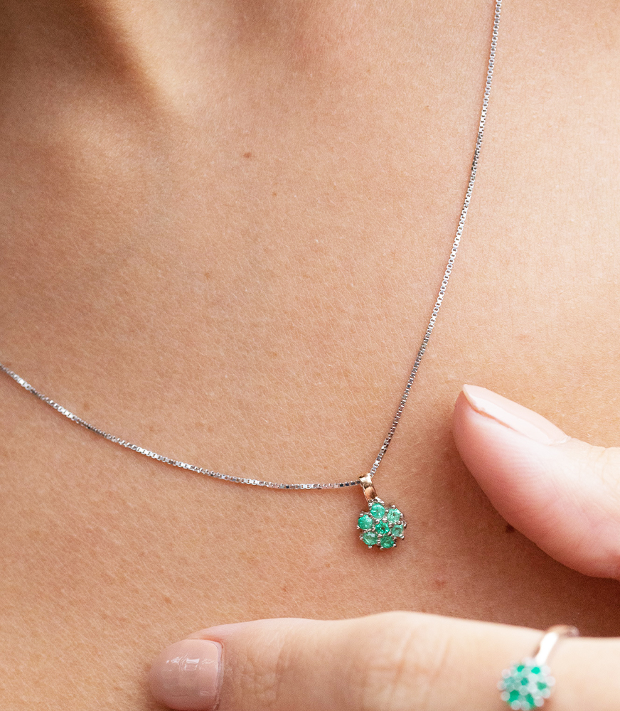 - Collares de esmeraldas: Ideales para quienes buscan una pieza central que acapare miradas. La pureza del verde esmeralda, rodeada por la brillantez de la plata, hace que estos collares sean una elección única y sofisticada.