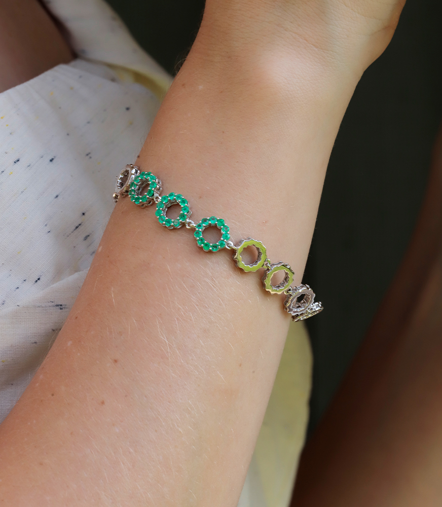 - Pulseras con esmeraldas: Añade un toque de lujo a tu look diario con nuestras pulseras en plata adornadas con esmeraldas. Cada pieza está cuidadosamente diseñada para realzar la belleza natural de la piedra, manteniendo un estilo moderno y atemporal.