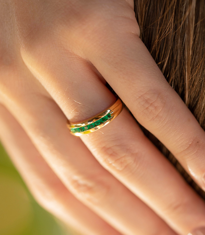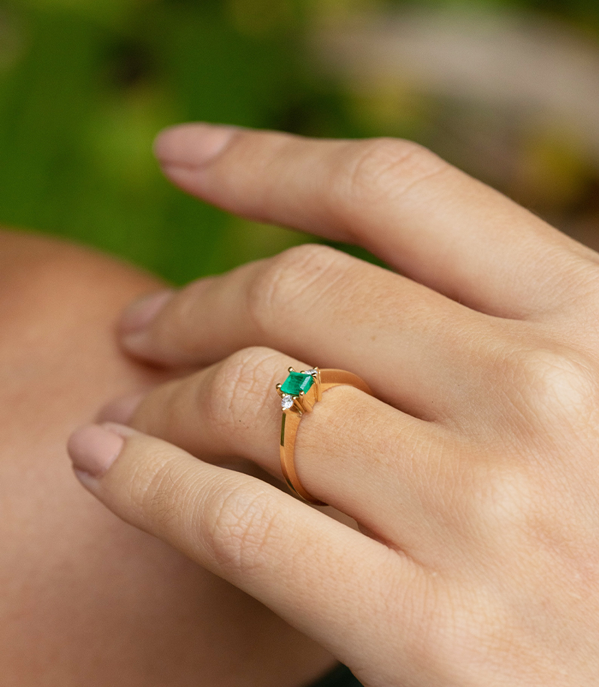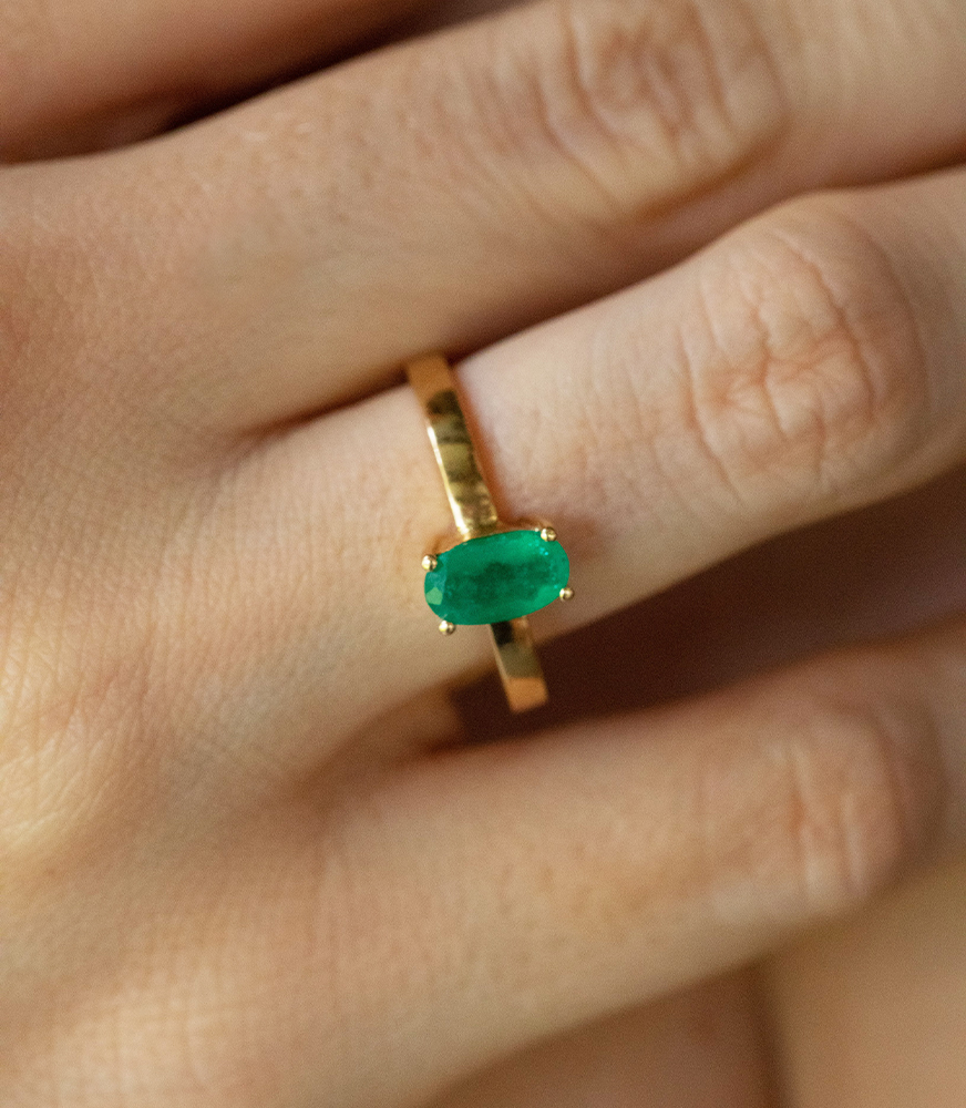 Anillo con esmeralda en oro de 18k: Perfecto para demostrar un amor eterno y elegante. Su diseño clásico con esmeralda natural lo hace inolvidable