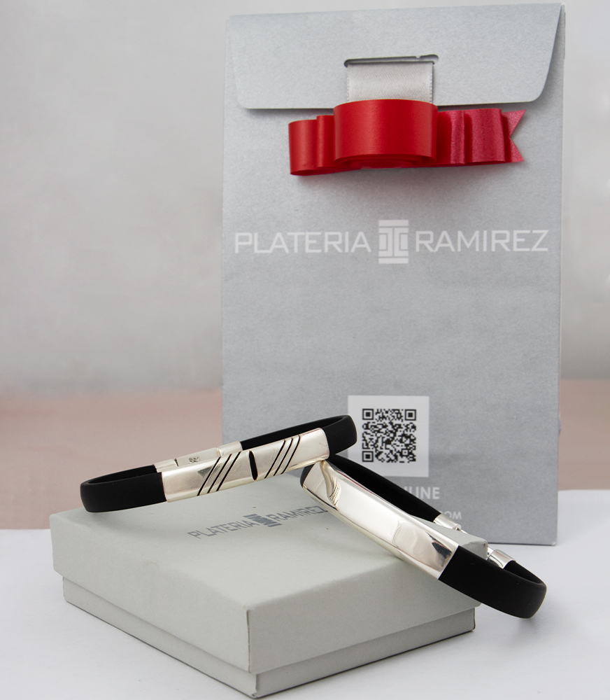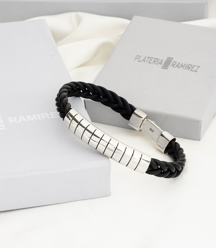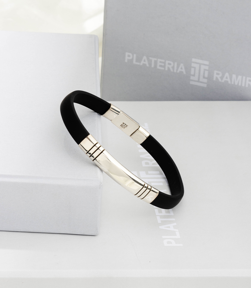 Pulsera unisex en látex y plata: Moderna y versátil, perfecta para alguien con un estilo casual y fresco.