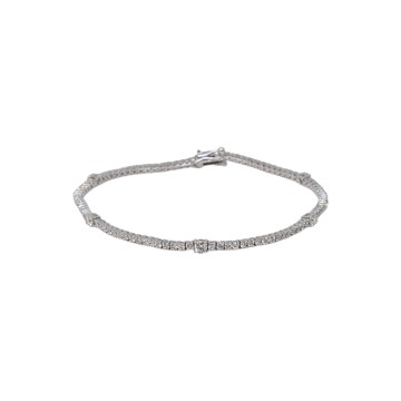 Esta pulsera, elaborada en oro blanco de 18K, se realza con el brillo incomparable de los diamantes, creando una pieza sofisticada y eterna. Su diseño elegante y refinado la convierte en el complemento ideal para realzar cualquier look con distinción y lujo. Un símbolo de elegancia que trasciende el tiempo.