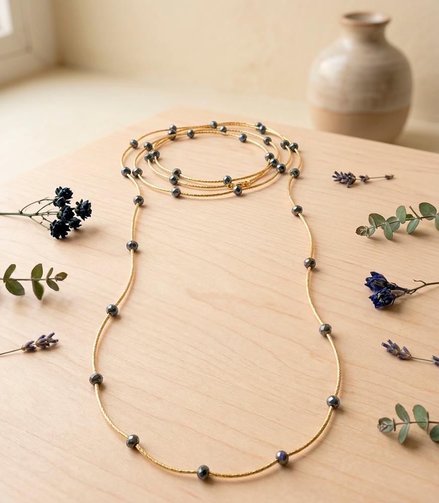 Este collar precolombino combina la fuerza de la tradición ancestral con un diseño contemporáneo y refinado. Está elaborado con herrajes en aleación de metales bañados en oro de 24 quilates y ágatas verdes semipreciosas de 10 mm, que aportan equilibrio, frescura y un toque de distinción natural.