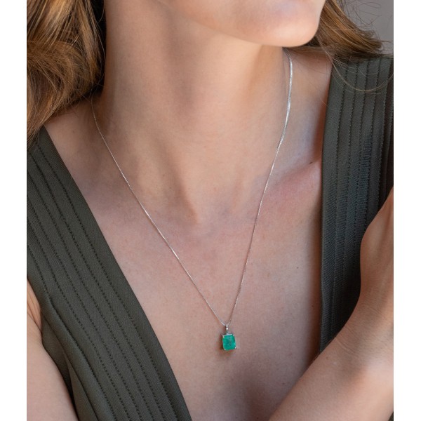 Nuestra cadena con dije de esmeralda en corte rectangular, elaborada en plata ley 925, es una joya que refleja distinción y sofisticación. El diseño minimalista de la cadena realza la belleza del dije, mientras el vibrante color de la esmeralda, con su corte elegante, captura miradas y eleva cualquier look. Perfecta para ocasiones especiales o para agregar un toque de lujo a tu estilo diario. ¡Una pieza imprescindible para quienes aman la belleza clásica y refinada