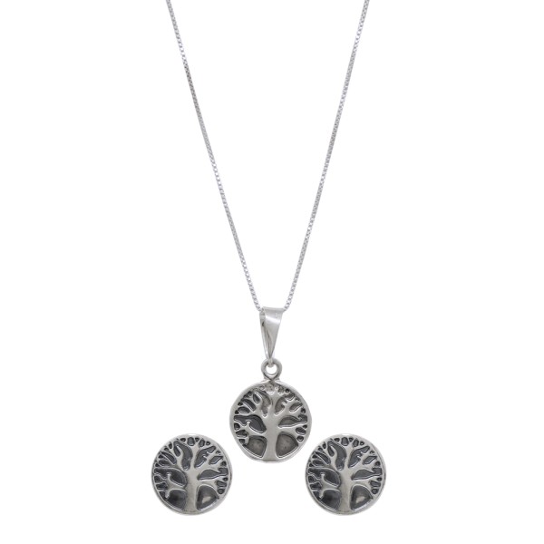 Descubre la elegancia de nuestro set de cadena, aretes y dije, elaborado en plata ley 925 y adornado con el símbolo del Árbol de la Vida. Un diseño lleno de significado que representa crecimiento, fortaleza y armonía. Perfecto para regalar o complementar tu look con un toque especial de sofisticación.