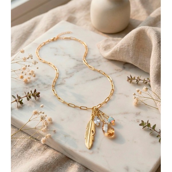 Destaca con un diseño moderno y sofisticado. Nuestro collar de eslabones grandes, elaborada en plata ley 925, combina la elegancia de un dije en forma de hoja con el brillo sutil de una piedra en forma de lágrima. Un accesorio único que añade carácter y distinción a cualquier look