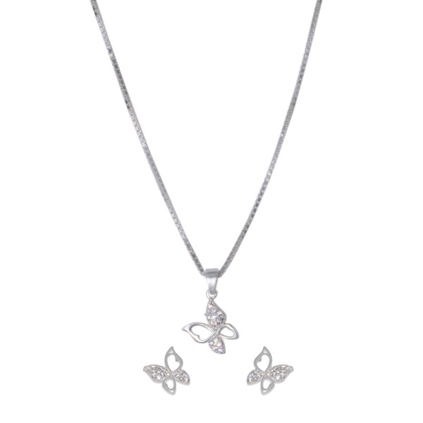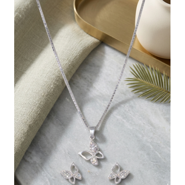 GARGANTILLA EN PLATA LEY 925 CON ARETE DIJE MARIPOSA CIRCONES 565412-1
