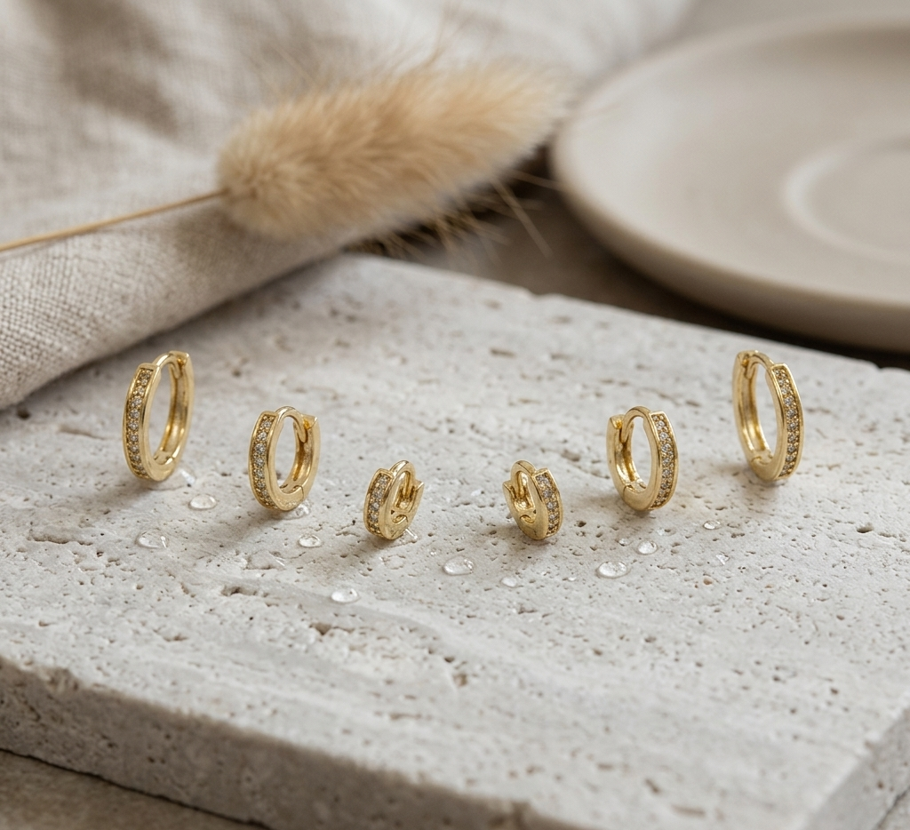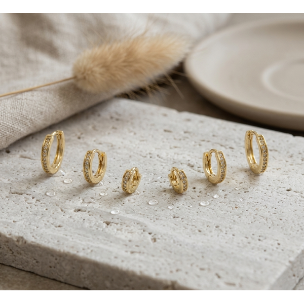Luce estilo y versatilidad con este set x3 de aretes tipo Huggies en bronce Candomgás, referencia 569344. Diseñados para combinar elegancia y comodidad, estos aretes son perfectos para usar solos o juntos, aportando un toque moderno y sofisticado a cualquier look.