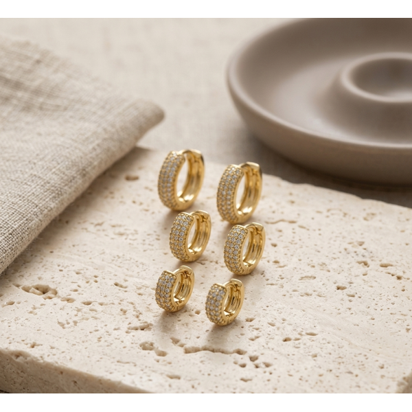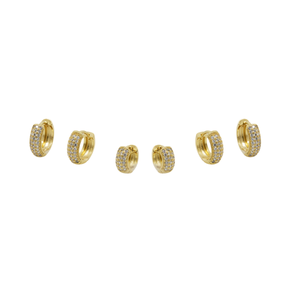 Añade un toque sofisticado a tu estilo con este set x3 de aretes tipo candonga en bronce con tres líneas decoradas con circones, referencia 569352. Su diseño moderno y elegante aporta brillo y distinción, ideal para complementar cualquier look, desde el día a día hasta ocasiones especiales.