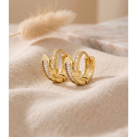 Diseño moderno y brillante en un formato cómodo. Esta candonga tipo Huggies en plata 925 está adornada con circones que aportan destellos sutiles, combinando estilo y practicidad gracias a su sistema de clavo seguro. Una pieza versátil que se adapta al uso diario, perfecta para quienes buscan un accesorio elegante y sofisticado sin perder comodidad.