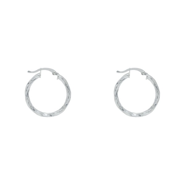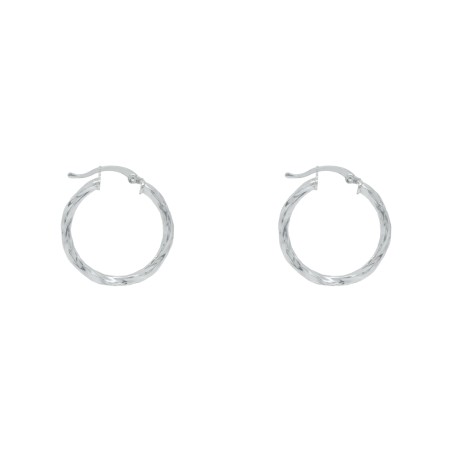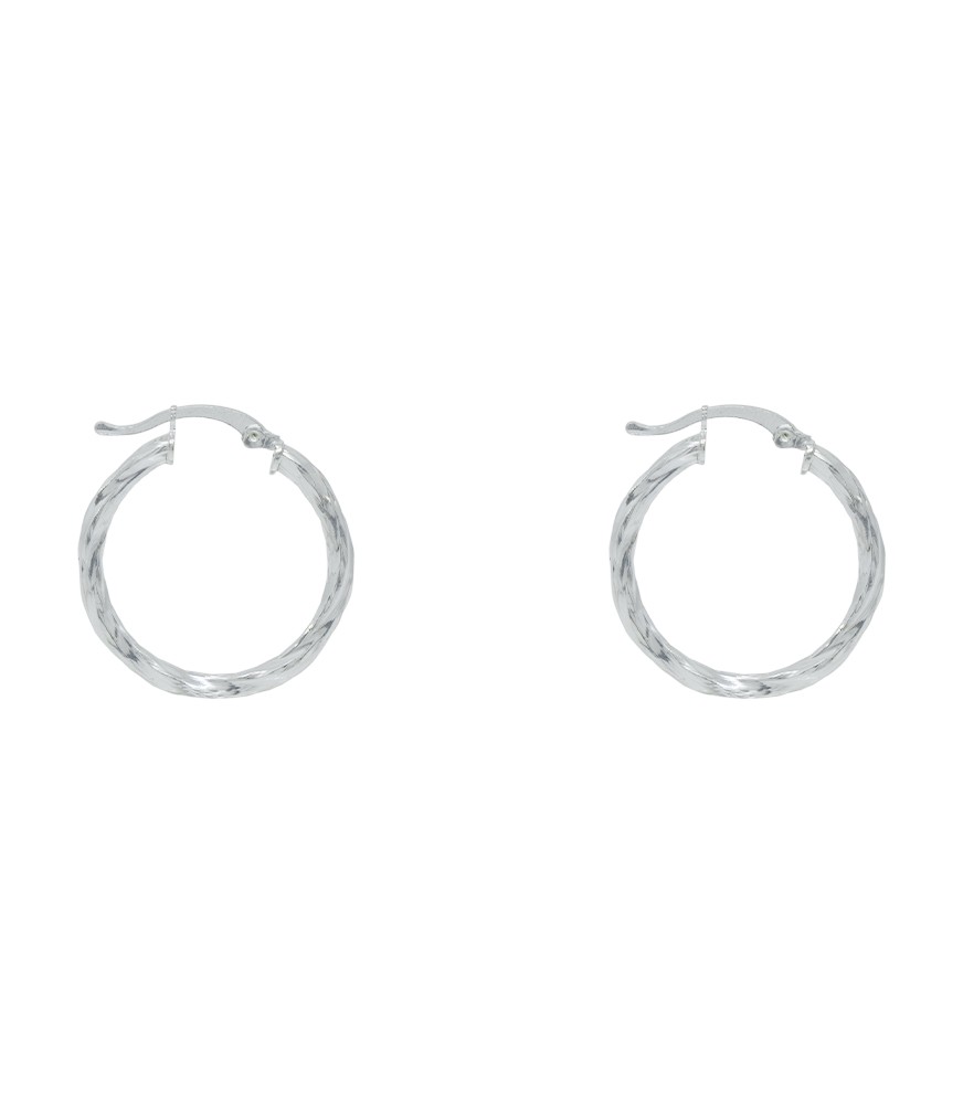 Candongas elaboradas en plata ley 925 con un diseño retorcido y un elegante acabado diamantado que realza su brillo y textura. Su estilo moderno y sofisticado las convierte en el complemento ideal para elevar cualquier look con un toque de distinción y elegancia atemporal.