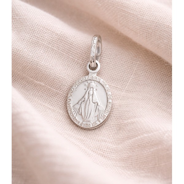 Esta Medalla Milagrosa en plata ley 925 es una joya clásica cargada de significado espiritual. Su diseño tradicional y delicado acabado resaltan el brillo natural de la plata, convirtiéndola en una pieza atemporal ideal para uso diario o para acompañar momentos especiales de fe y devoción.