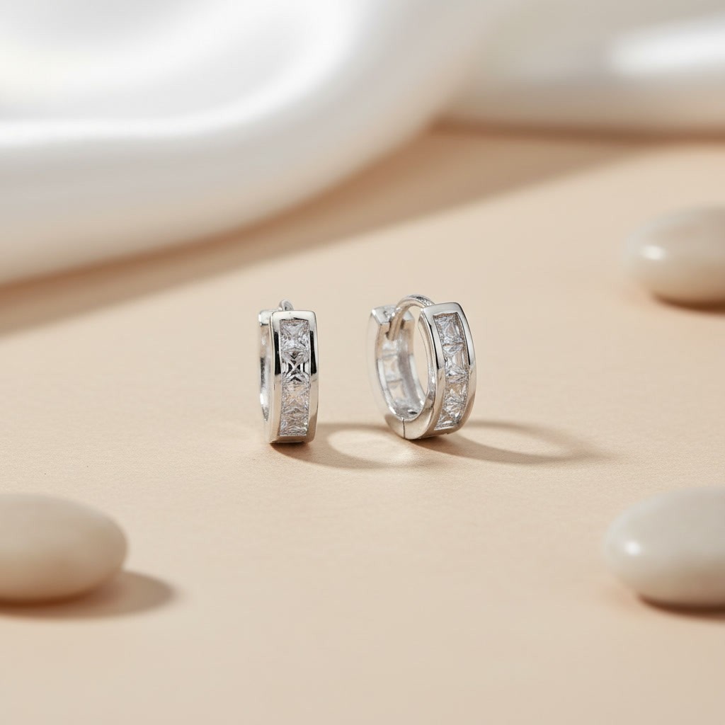 Estas candongas huggies elaboradas en plata ley 925 destacan por su diseño delicado y atemporal. Están adornadas con circones que aportan un brillo sutil y elegante, ideales para acompañar tus looks diarios o complementar ocasiones especiales con un toque refinado y moderno.