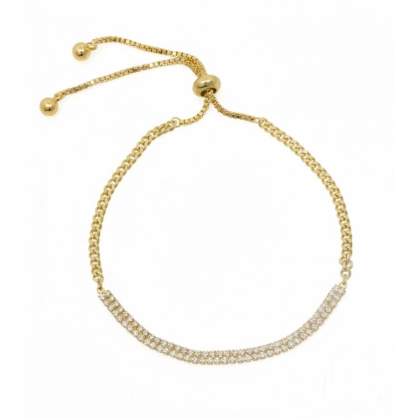 Pulsera tennis en bronce con acabado dorado, una joya elegante y sofisticada, ideal para quienes buscan pulseras con un diseño moderno y brillante; su estilo tennis doble aporta mayor presencia y distinción, convirtiéndola en una opción perfecta para realzar cualquier look, ya sea para uso diario o para regalar, gracias a su durabilidad, acabado fino y elegancia atemporal.