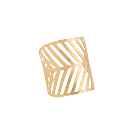 Precioso brazalete en bronce, con baño en ro de 24 kilates. Diseño novedoso en forma de hoja, con un estilo calado. Mide 6.5 cms de diámetro.