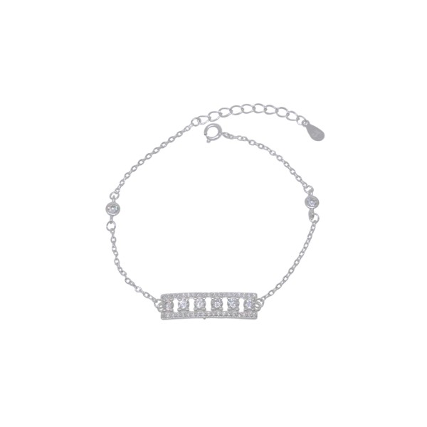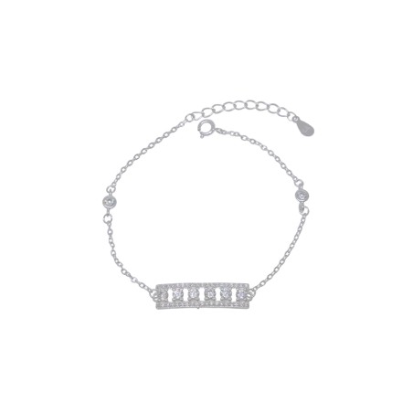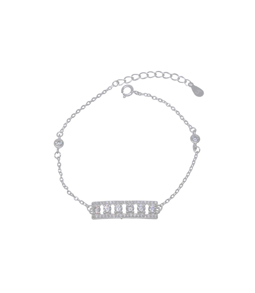 Destaca con elegancia y brillo con esta pulsera elaborada en plata ley 925, diseñada con una delicada barra central y adornada con circones que aportan un toque de sofisticación. Ideal para complementar tus looks diarios o realzar un atuendo especial con sutileza y estilo.