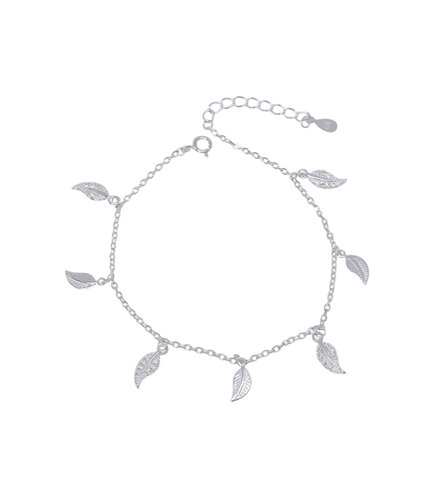 Inspírate en la naturaleza con esta delicada pulsera elaborada en plata ley 925.  Su diseño adornado con pequeñas hojitas y circones refleja elegancia y frescura en cada detalle. Perfecta para iluminar tu look diario o complementar tus outfits más sofisticados con un brillo sutil y encantador.