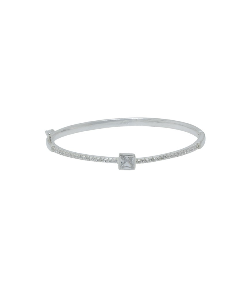 Refleja tu elegancia con este aro pulsera cerrado en plata ley 925, una joya que destaca por su diseño sofisticado y su brillo incomparable. Su circon central cuadrado, enmarcado por delicados circones laterales, crea un equilibrio perfecto entre modernidad y distinción. Ideal para elevar cualquier look con un toque de lujo sutil.
