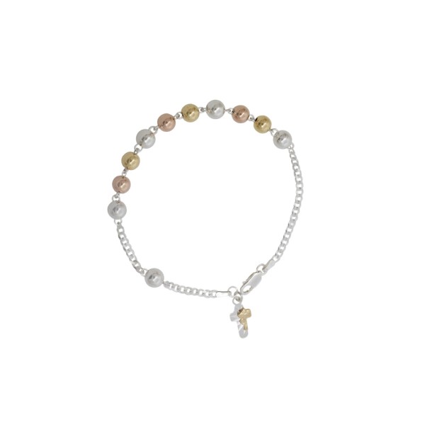PULSERA DENARIO TRICOLOR CON BOLAS DE 6 MM EN PLATA DE LEY 925 - 573466