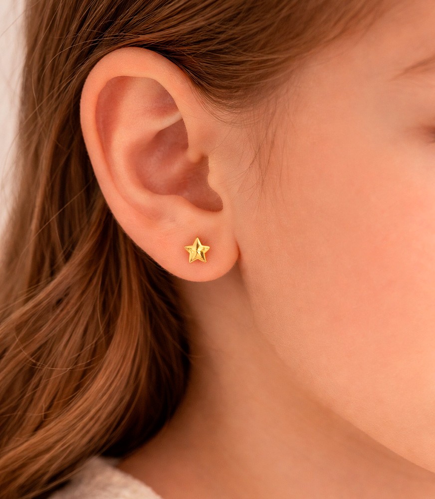 Un diseño delicado y moderno. Este topo en oro 18K presenta un motivo de estrella que aporta un detalle sutil y elegante a cualquier look. Su tamaño pequeño y acabado pulido lo convierten en un accesorio versátil, ideal para el uso diario o para complementar estilos más sofisticados con un toque de brillo y distinción.