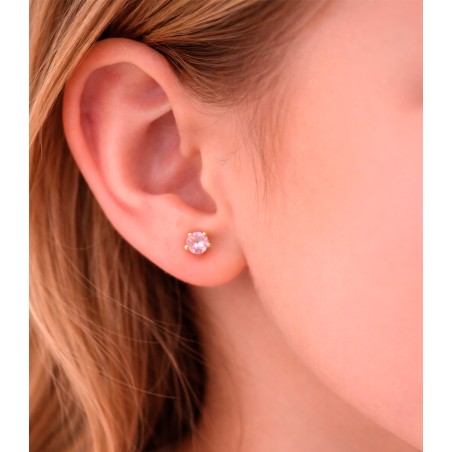 Un diseño elegante y versátil. Este topo en oro 18K está adornado con un circon que aporta un brillo sutil y sofisticado, perfecto para cualquier ocasión. Su tamaño pequeño y acabado pulido lo hacen ideal para el uso diario, combinando estilo, calidad y un toque de distinción en una sola pieza.